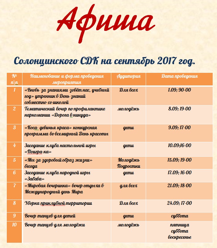 Афиша на сентябрь