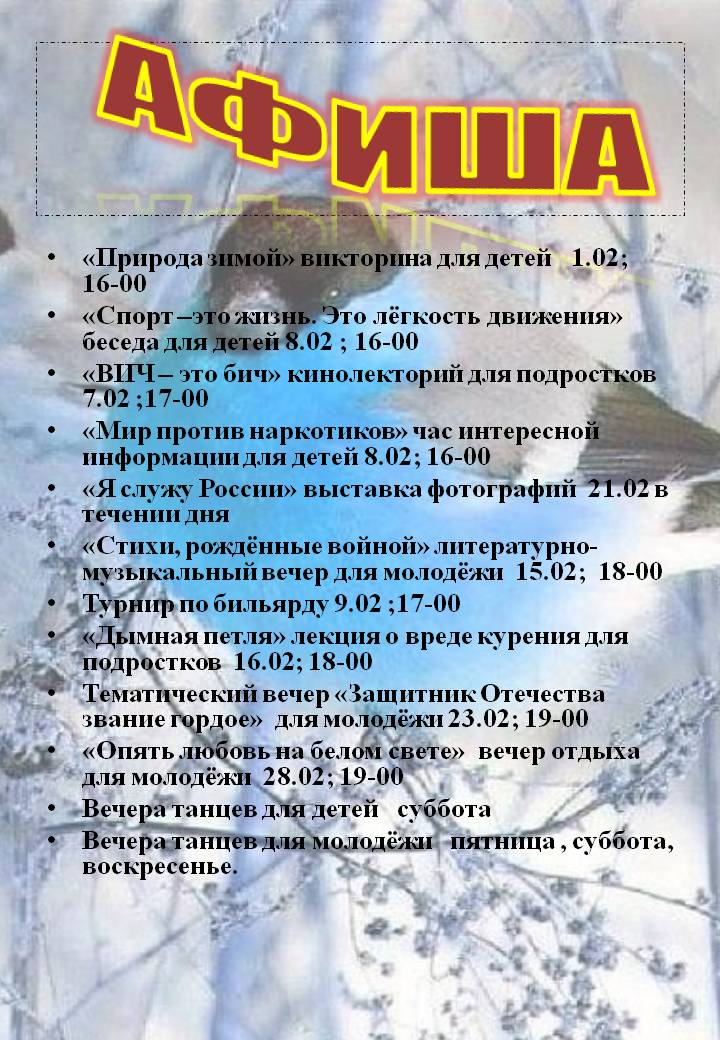 АФИША НА ФЕВРАЛЬ 2020 год