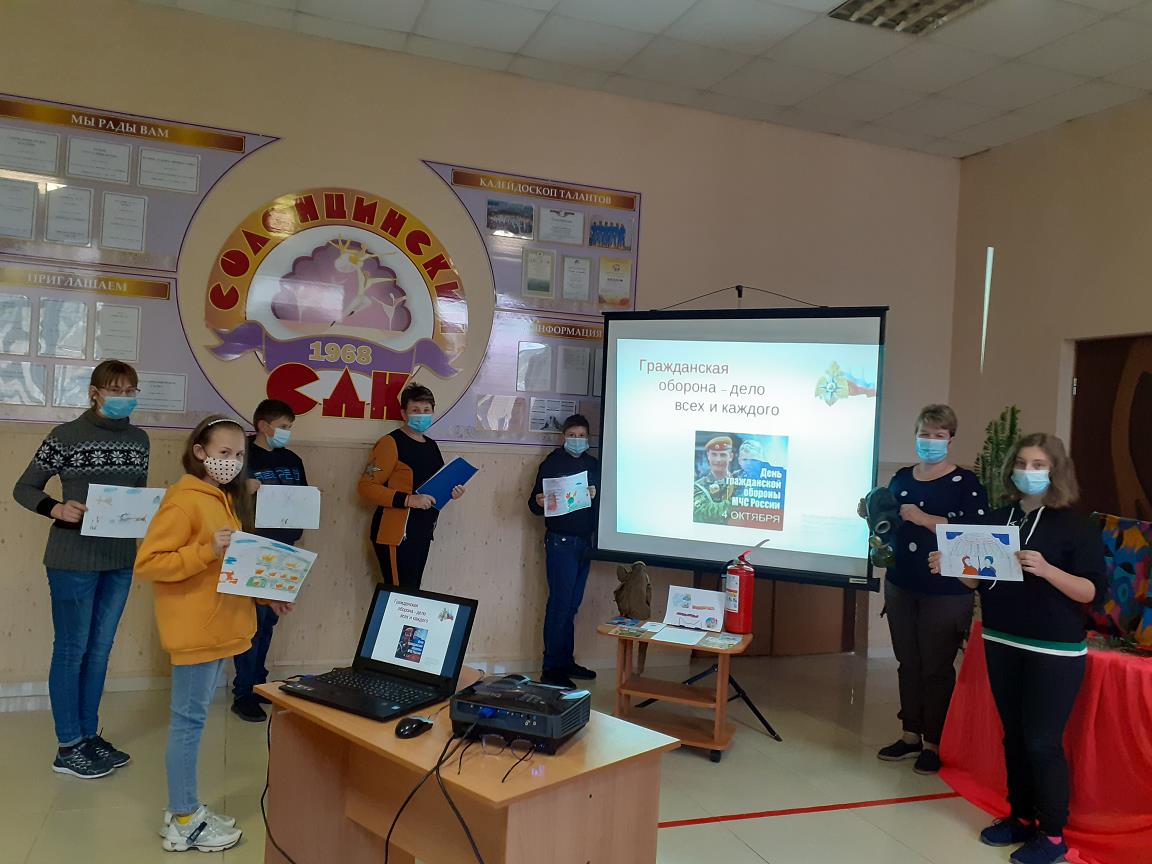13 октября, в рамках месячника по проведению мероприятий по Гражданской обороне, работники Солонцинского Дома культуры провели беседу на тему ГО и ЧС "Чрезвычайная ситуация вокруг нас" для детей. В ходе мероприятия ребят ознакомили с понятием "Гражданская оборона", на что она направлена и каковы её задачи? Дети узнали, что поведение в чрезвычайных ситуациях ГО - это отложенная и эффективно работающая система, в состав которой входит многие службы, где работают специально обученные люди. Затем ребята совершили познавательное путешествие, побывав на различных станциях: " При пожаре как, набираем 101" и "Один дома", где они могли не только познакомится с основными правилами, но и задать интересующие их вопросы. поделиться своим мнением.
