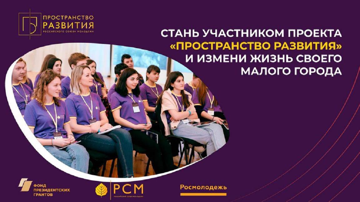 19 января стартовала регистрация на участие в проекте по поддержке малых городов России «Пространство развития» Российского Союза Молодежи. Молодые люди из малых городов и поселений страны смогут получить необходимые знания и навыки для разработки и реализации своих социально значимых инициатив.