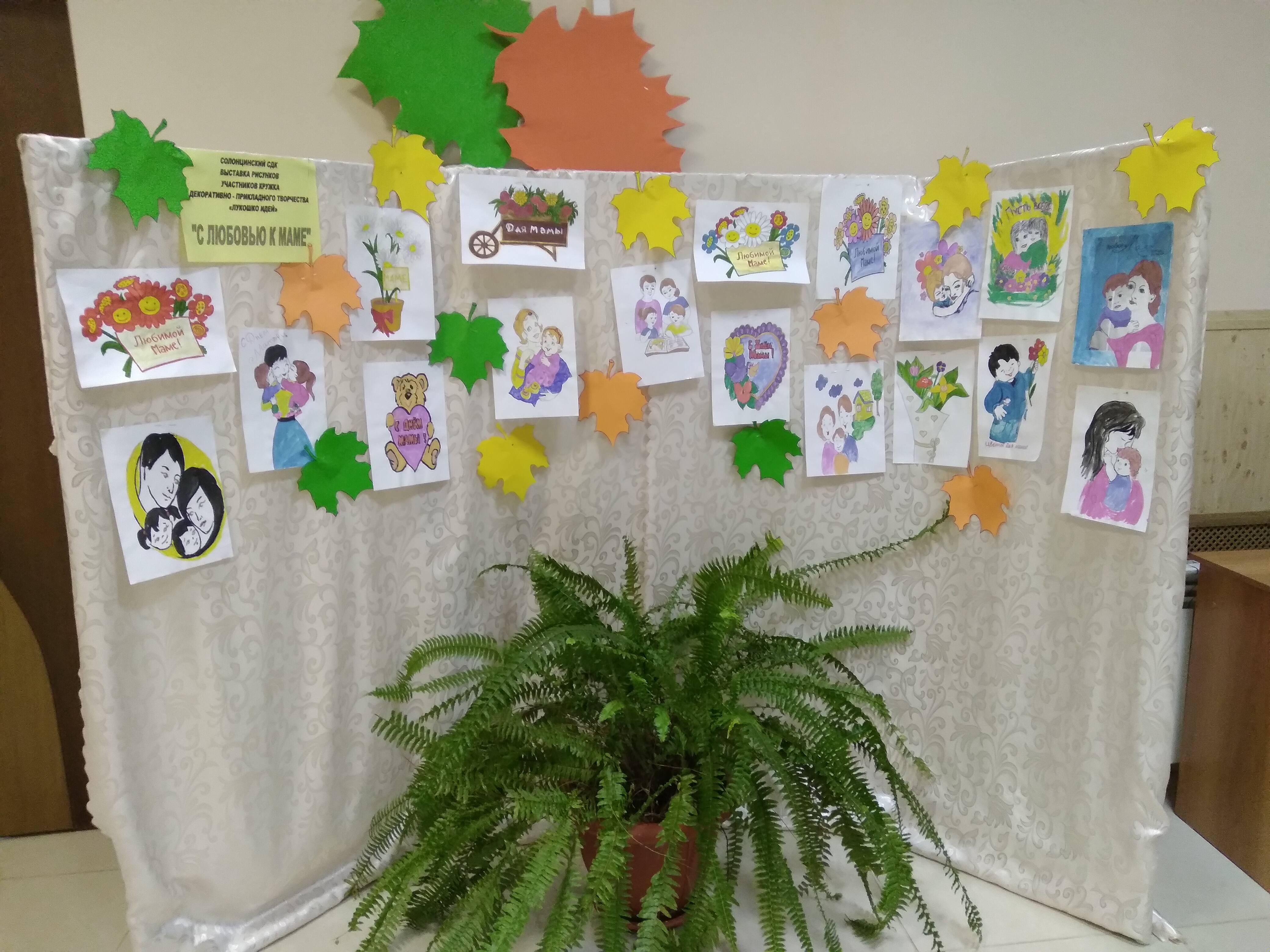 В преддверии самого замечательного праздника – Дня Матери, работники Солонцинском СДК организовали выставку рисунков «С любовью к маме». С нежностью дети передали образ мам в портретах, нарисовали для них красивые букеты.