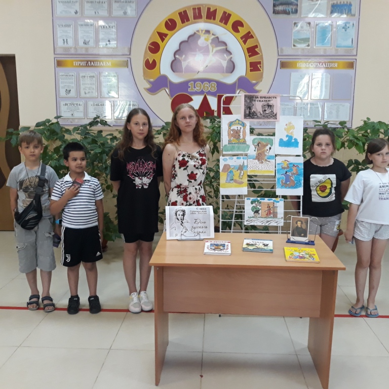 В Солонцинском СДК 7 июня состоялась литературная гостиная «Александр Сергеевич Пушкин». Ведущие рассказали о биографии поэта, о творческом пути Пушкина и познакомили с удивительным миром пушкинских сказок. Дети читали отрывки прозы и стихов поэта. Затем была проведена викторина «У лукоморья». Ребятам предложили вспомнить сказочных героев и расшифровать старинные слова, отгадать загадки.